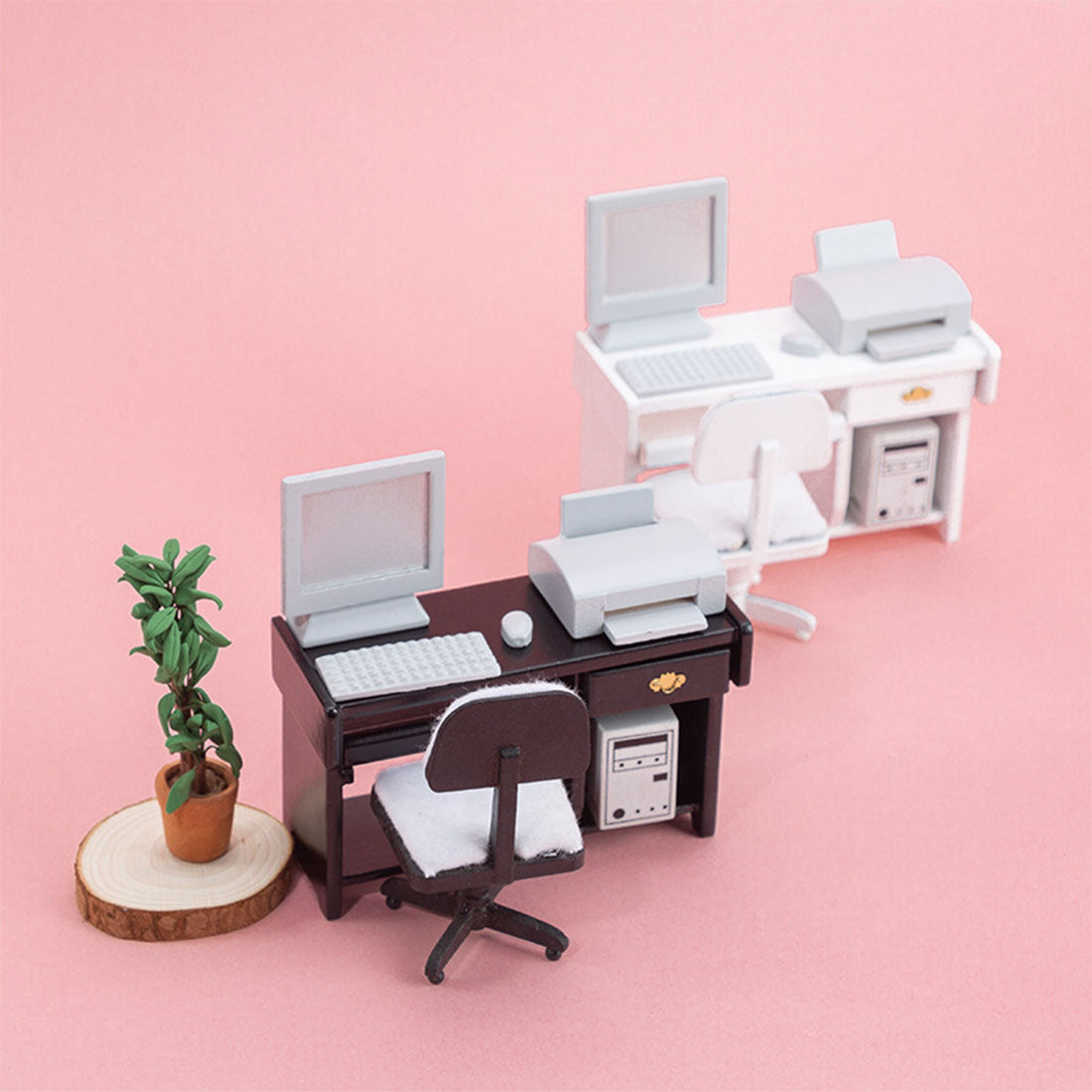 .Complete Office Set: Includes computer desk, chair, mouse, keyboard, computer, host and printer – perfect for crafting a mini office setup!