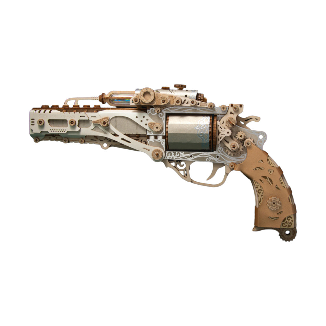 .Detachable Structure: The revolver puzzle features a detachable structure with spare parts for key components. This allows you to disassemble and reassemble the puzzle repeatedly, increasing its playability and durability.